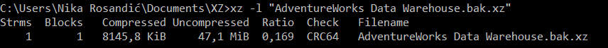 Keywords: kompresija; xz; sažimanje; Linux; dekompresija