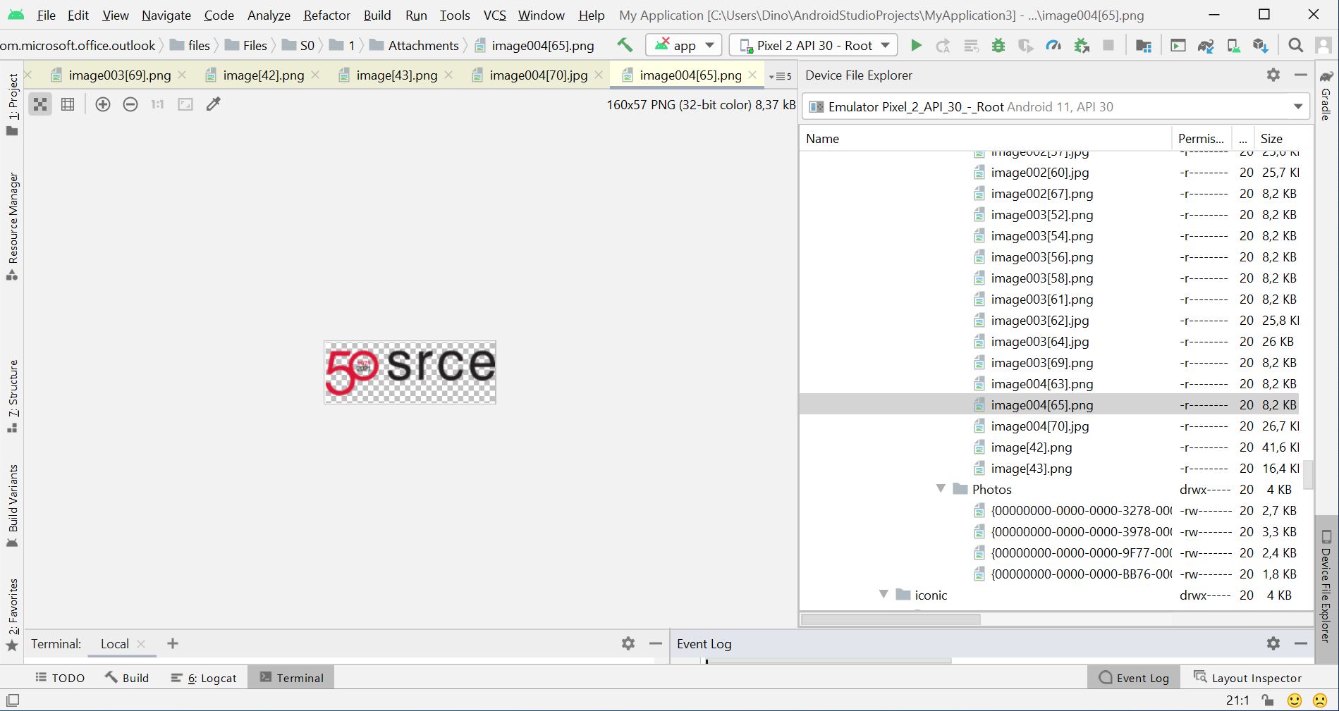 Ostaje pitanje kako doći do root ovlasti? Kada bi radili forenziku na stvarnom uređaju bilo bi potrebno steći root ovlasti za taj uređaj, za što postoje brojne upute na internetu. No, kako se stjecanjem root ovlasti gubi garancija na uređaj, za potrebe ovog seminara korišten je virtualni Android uređaj na koji je stavljena slika operacijskog sustava u kojoj su već prisutne root ovlasti. Zatim je ručno instalirana Outlook mobilna aplikacija. Aplikacija Outlook u izvođenju na virtualnom Android uređaju prikazana je na slici ispod. Sada kada imamo root ovlasti možemo pristupiti navedenom direktoriju i pogledati koje datoteke se unutra nalaze. Ovo radimo pomoću Device File Explorer alata koji je dostupan u Android Studio programu.