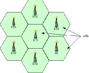 Radio-mrežna infrastruktura sastoji se od Baznih stanica i kontrolera baznih stanica i oblikovane su u mrežu. Mreža se sastoji od ćelija šesterokutnog oblika i u centru svake ćelije se nalazi bazna stanica te mreža oblikom podsjeća na pčelinji sač. Svaka od baznih stanica prilikom primitka poruke od mobilnog uređaja poruku šalje jezgrenom dijelu mobilne mreže. [2]